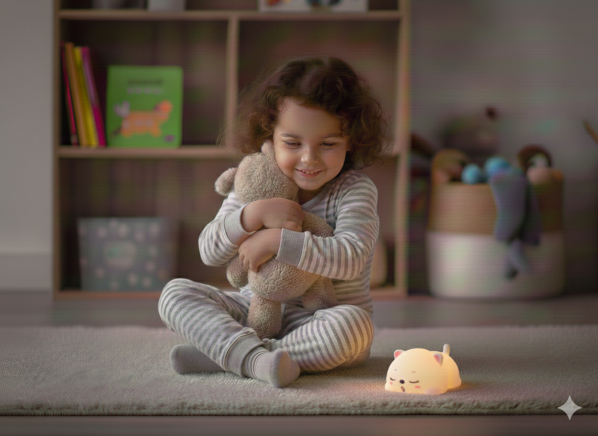 Plus qu’un objet, la veilleuse devient un rituel rassurant au moment du coucher.