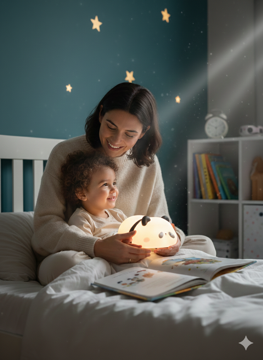 Plus qu’un objet, la veilleuse devient un rituel rassurant au moment du coucher.