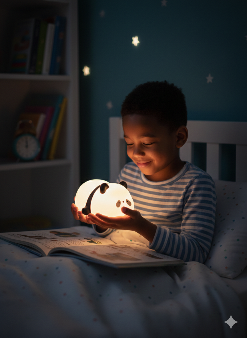 La veilleuse Panda Lunoova accompagne les enfants vers le pays des rêves avec une lumière douce et apaisante. Son design attendrissant et sa texture en silicone souple créent un véritable sentiment de sécurité, aidant les petits à se détendre pour s’endormir sereinement.